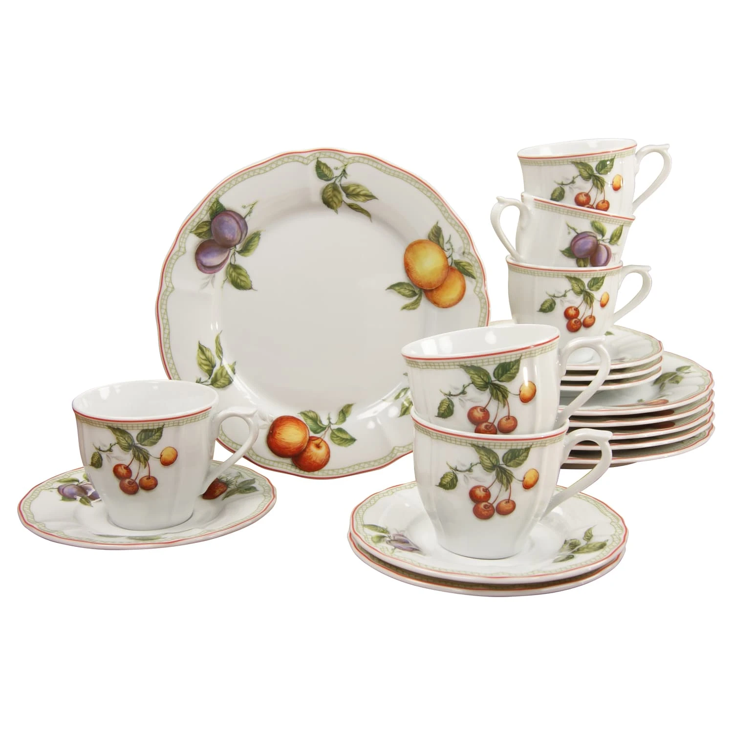 Sie erhalten hier ein dekoratives, mehrfarbiges 18-teiliges Kaffeeservice in folgender Zusammenstellung:
