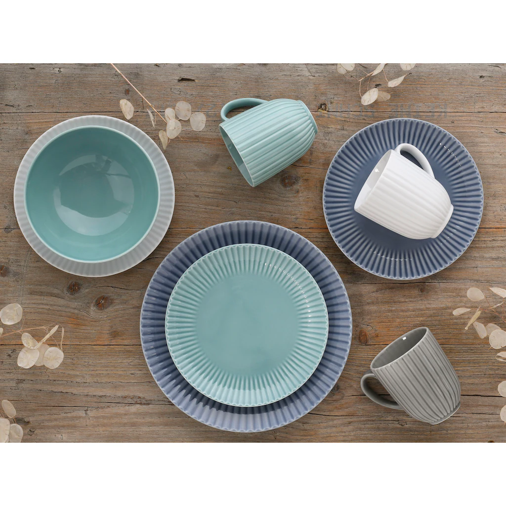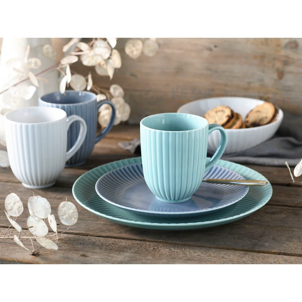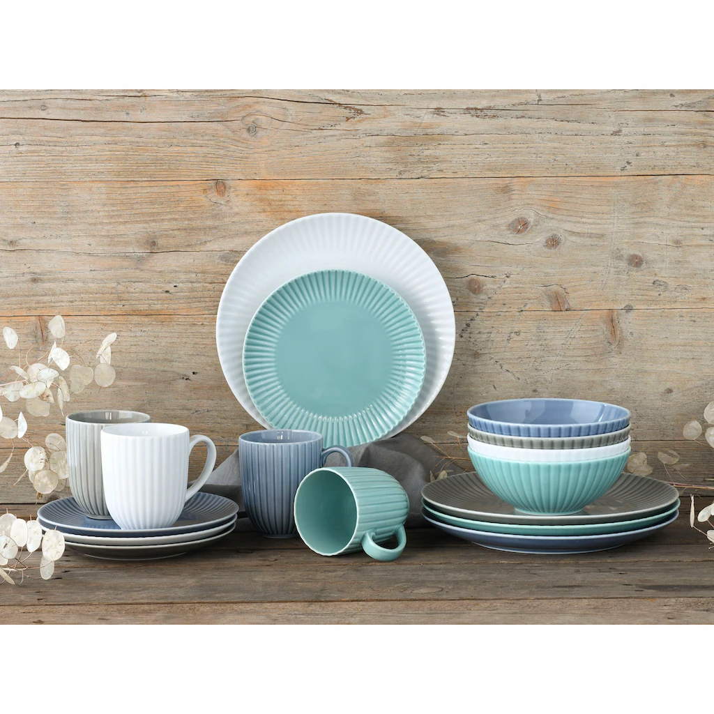 Das Porzellangeschirr präsentiert sich auf Basis der topaktuellen Coupeform im angesagten Design Mix Nostalgie, Bewegung und Leichtigkeit. Die Farbglasuren in den nicht deckenden Farben weiß, stein, petrol und blau setzen das Relief elegant in Szene. Das ideale Geschirr für den anspruchsvollen Genießer*in!