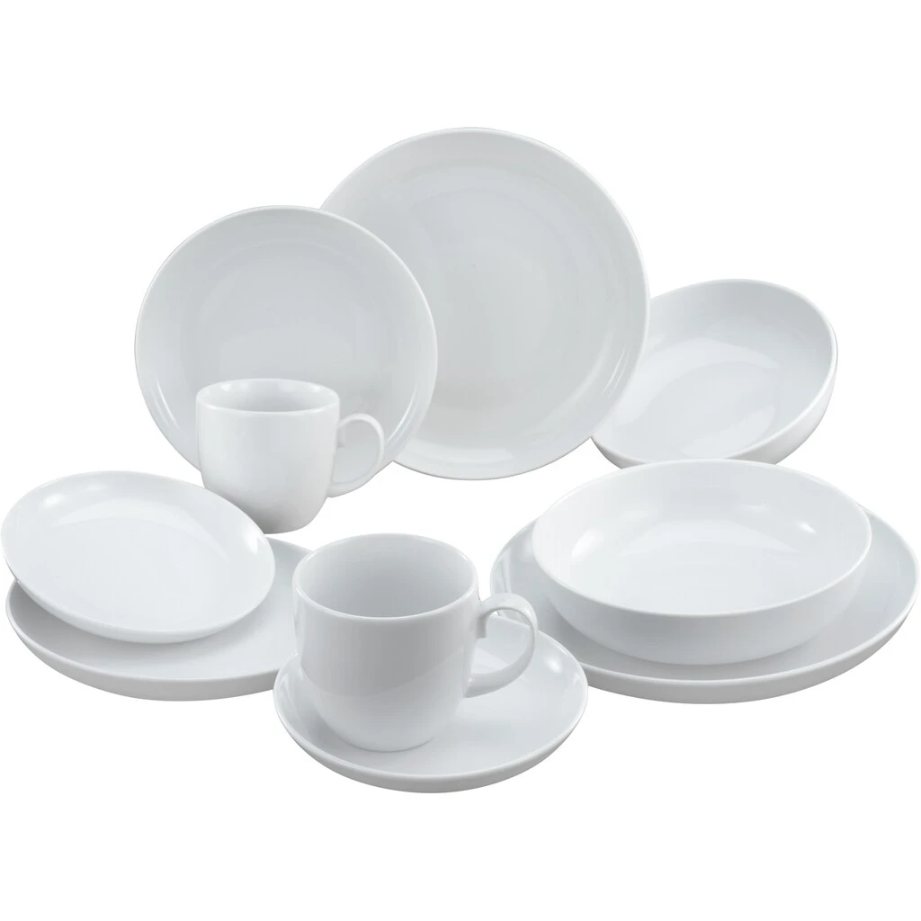 CreaTable Kombiservice „Allround, weiß“ – trendiges Geschirr für den Alltag oder für die festliche Tafel. Aus hochwertigem, europäischem Porzellan gefertigt. Idealerweise ist es auch für deine Spülmaschine und Mikrowelle geeignet