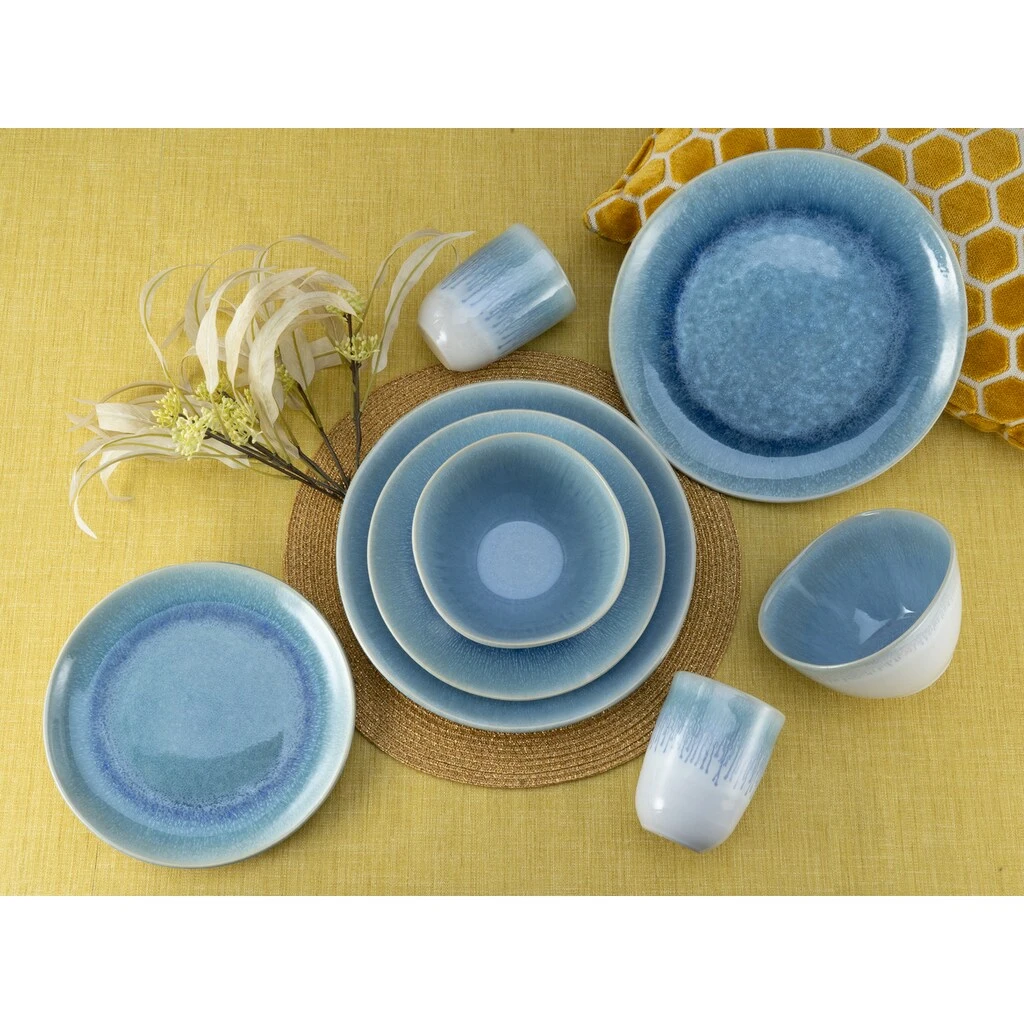 CreaTable Kombiservice »Aquarius«, (Set, 16 Tlg., Kaffeeservice Und Tafelservice Im Set, Für 4 Personen), Service, Reaktivglasur, Satte Haptik, Made In Europe