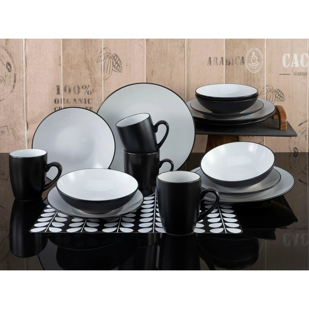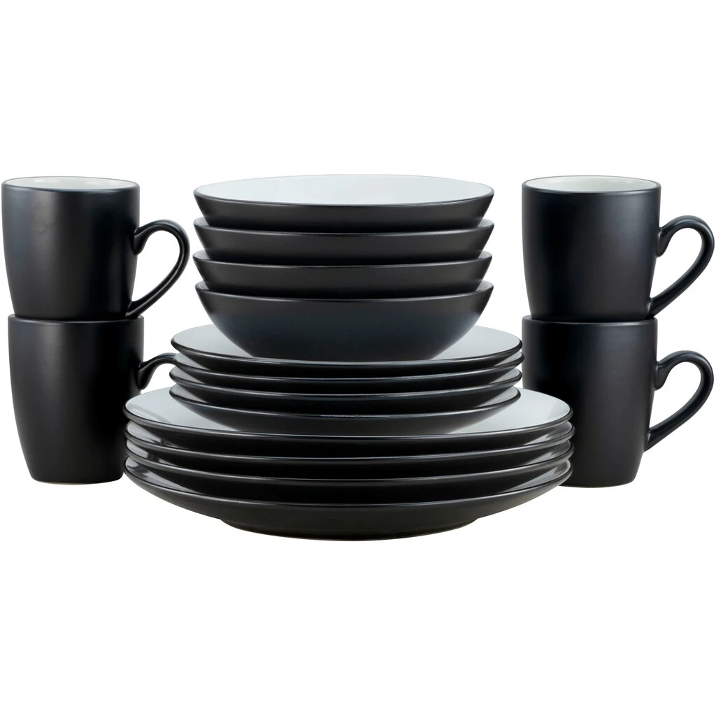 CreaTable Kombiservice »Cool Black«, (Set, 16 Tlg., Kaffeeservice Und Tafelservice Im Set, Für 4 Personen), Service, Coole Optik In Schwarz Weiß