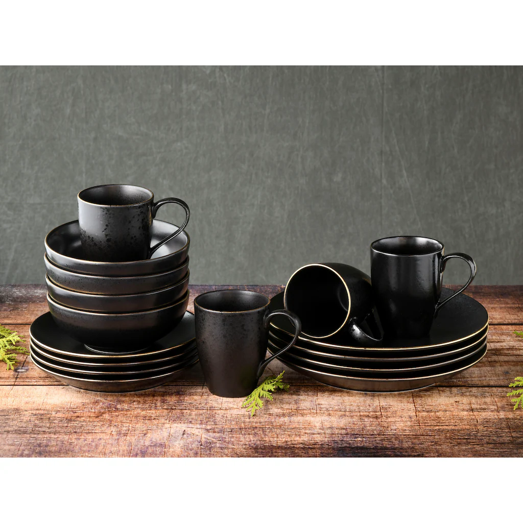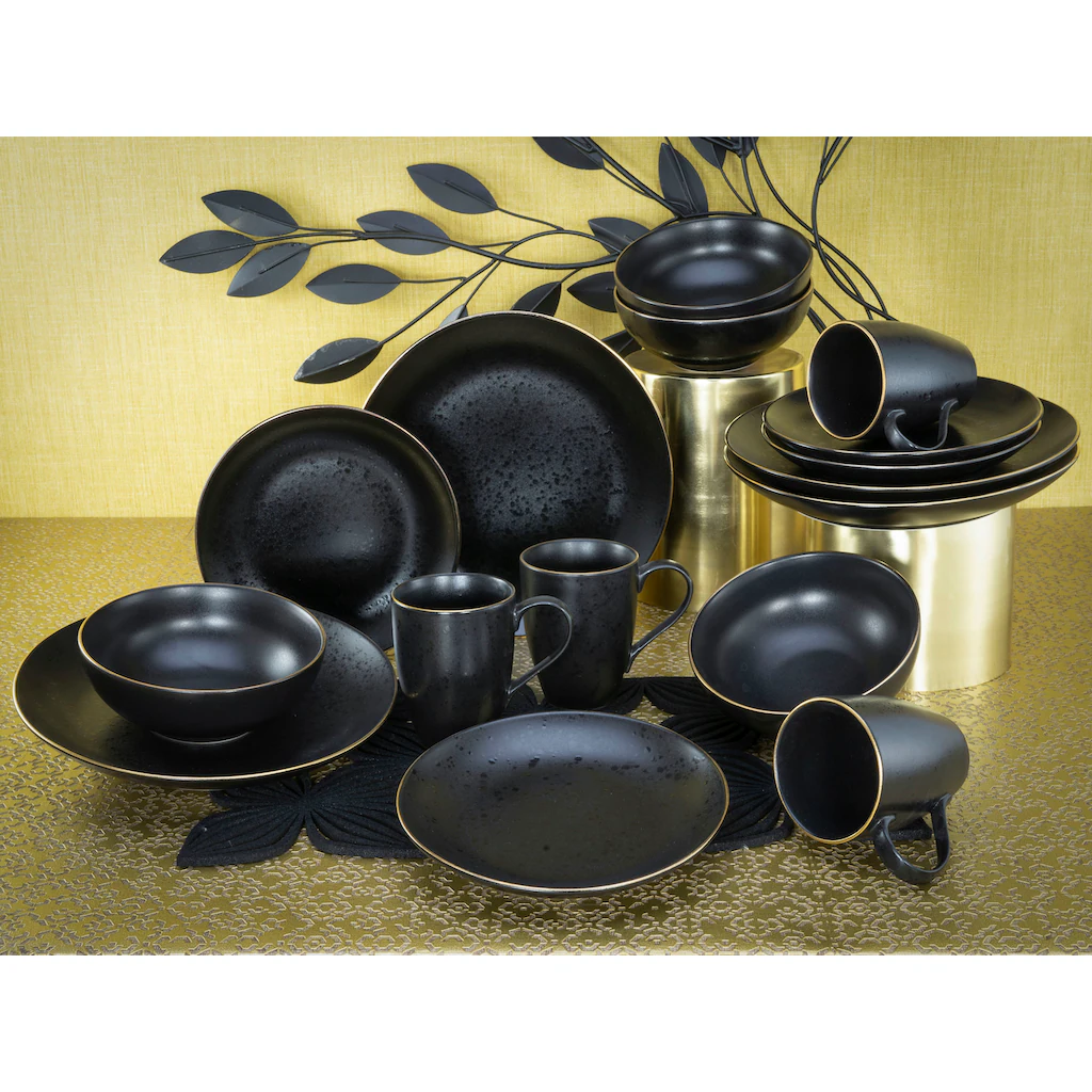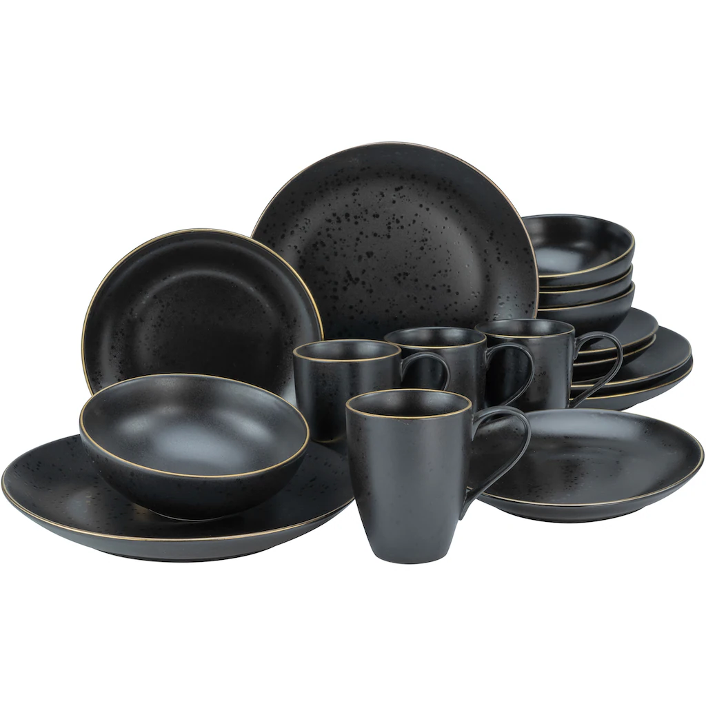 CreaTable Kombiservice »Industrial«, (Set, 16 Tlg., Kaffeeservice Und Tafelservice Im Set, Für 4 Personen), Service, Schwarze, Seidenmatte Sprenkelglasure; Goldrand
