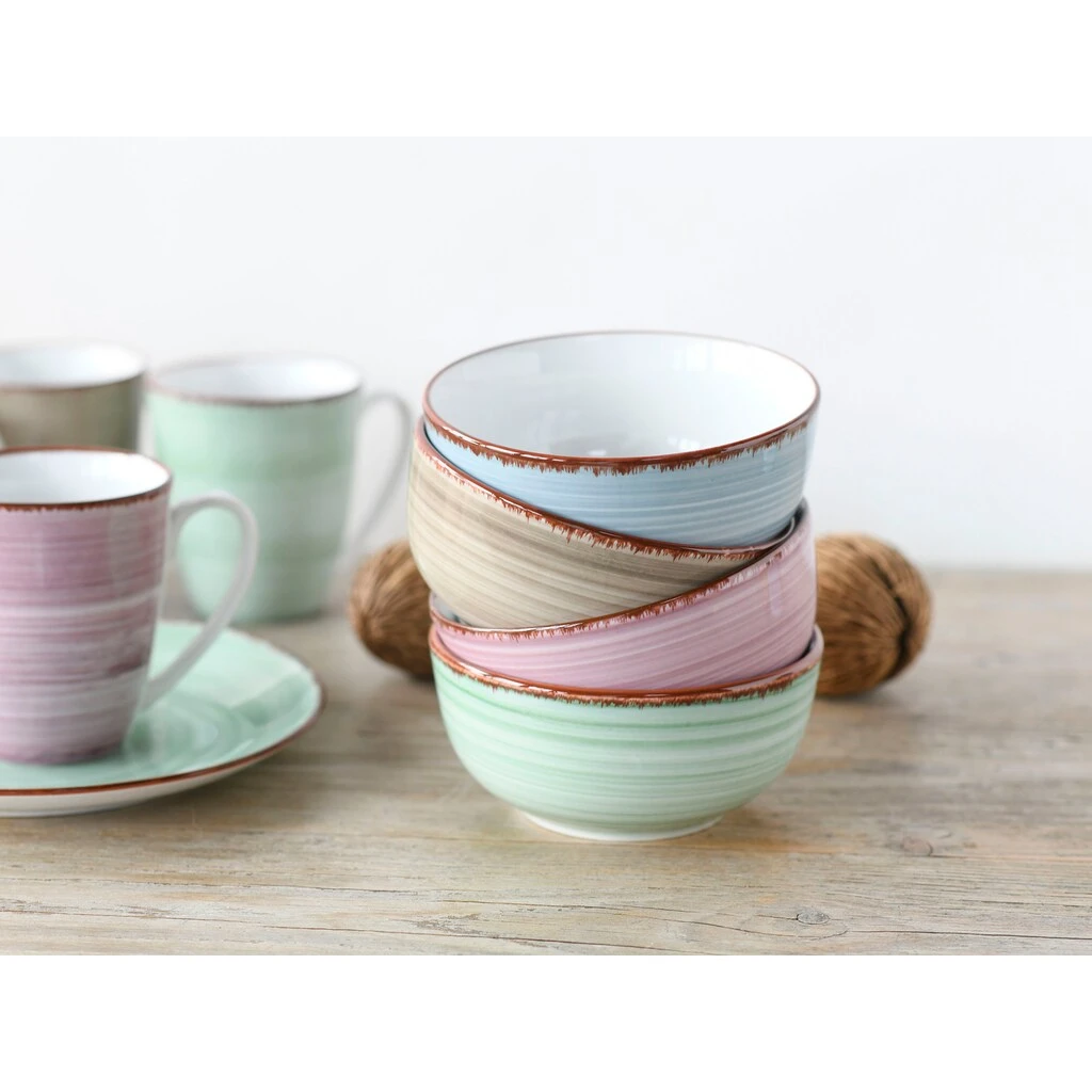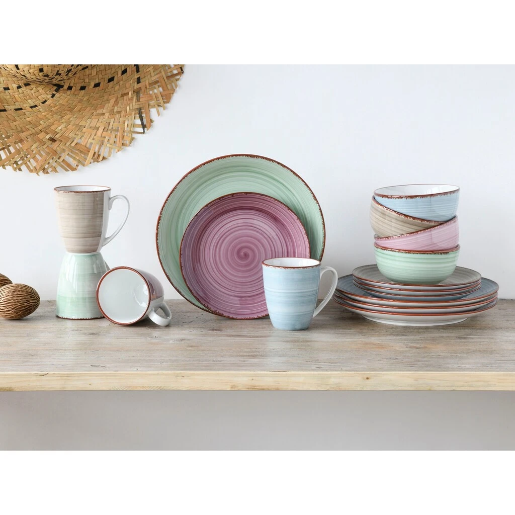 CreaTable Kombiservice »Samba«, (Set, 16 Tlg., Kaffeeservice Und Tafelservice Im Set, Für 4 Personen), Service, Handgemalter Spiraldekor, 4 Pastellfarben