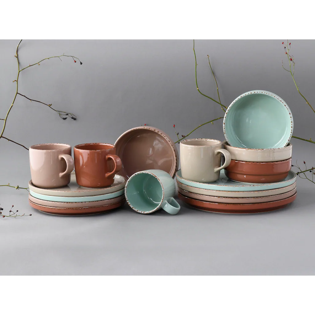 CreaTable Kombiservice »Terra Collection«, (Set, 16 Tlg., Kaffeeservice Und Tafelservice Im Set, Für 4 Personen), Service, 4 Angesagte Naturfarben, Glänzende Glasur, Made In Europe