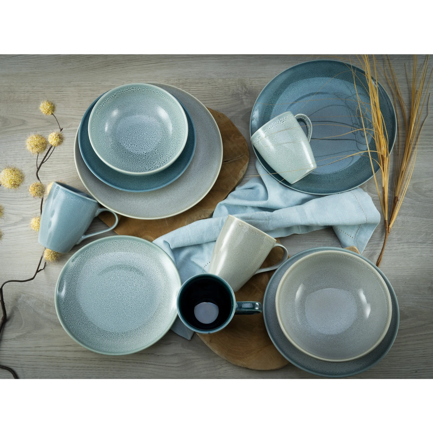 Die Reaktivglasur mit Sprenkeln vermittelt einen handwerklichen Look und folgt damit dem aktuellen Trend Vintage, Vegan und Natur.