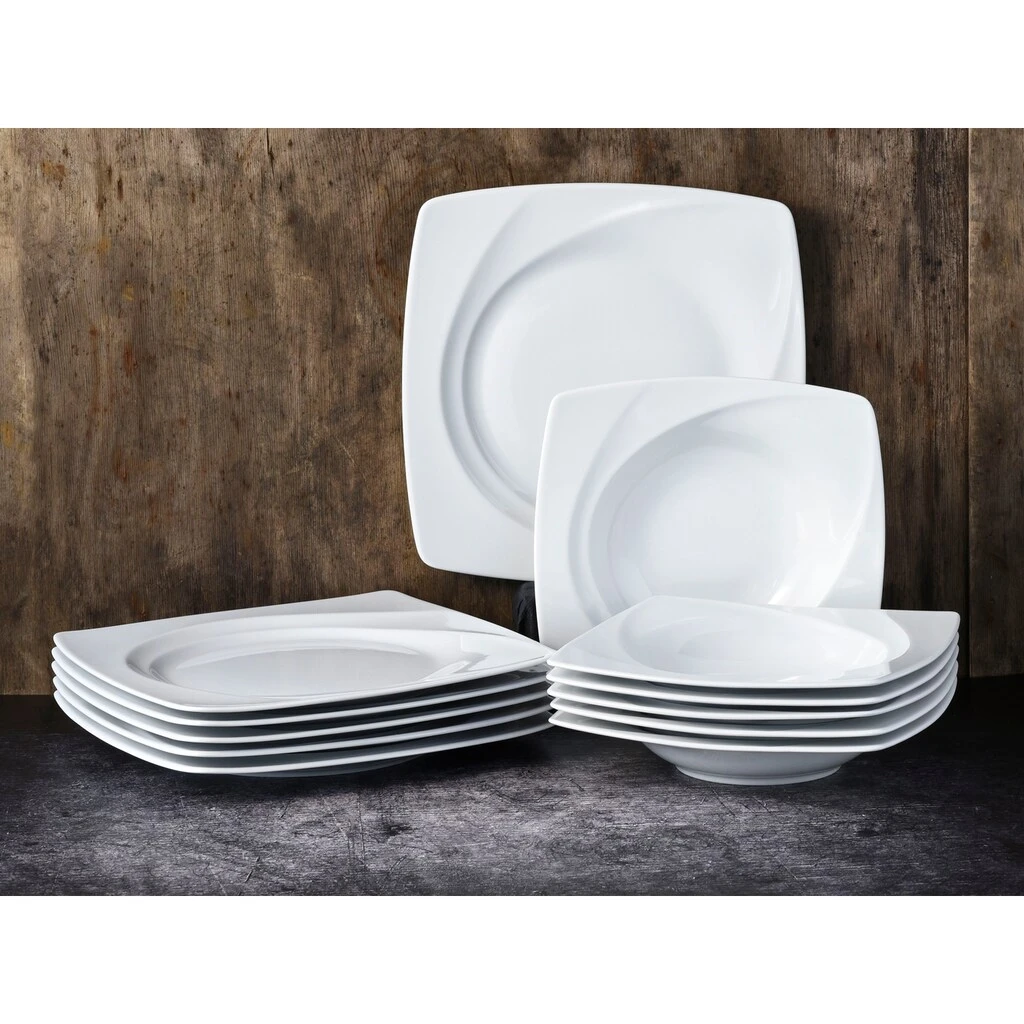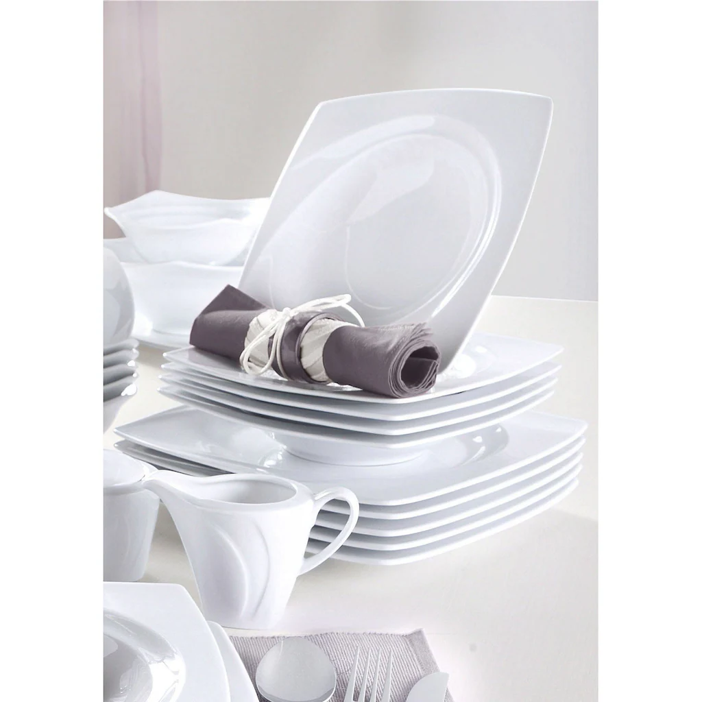 CreaTable Tafelservice »Celebration«, (Set, 12 Tlg., Teller Set Für 6 Personen), Teller Set, Weiß, Spülmaschinenfest, Made In Germany