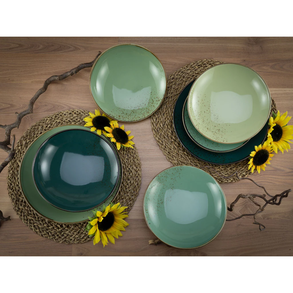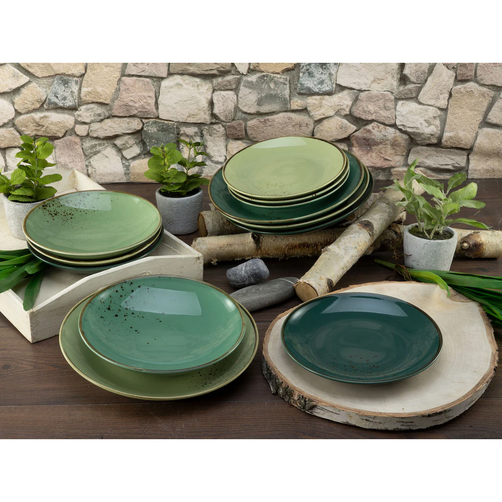 CreaTable Tafelservice »Nature Collection«, (Set, 12 Tlg., Teller Set Für 4 Personen), Service, Handwerklicher Look, Sprenkel, Reaktivglasur