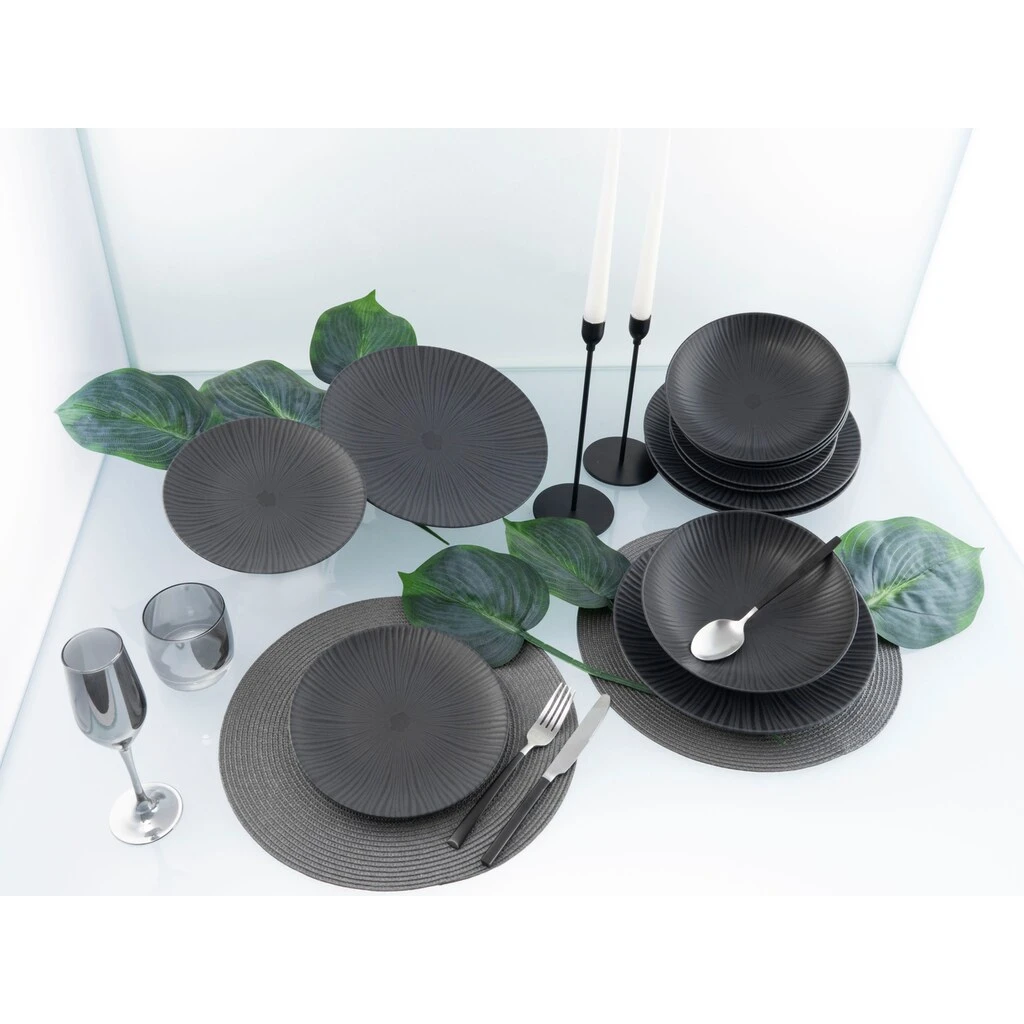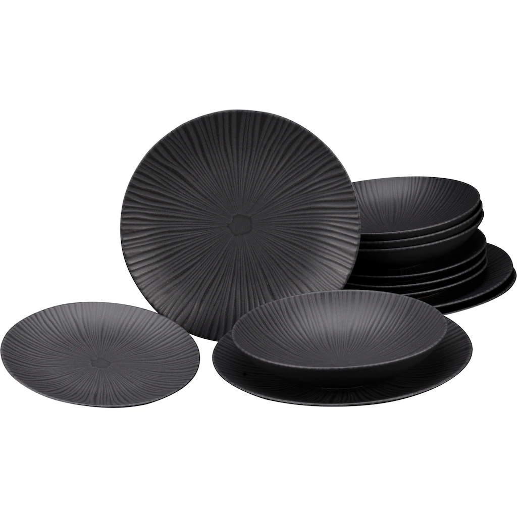 CreaTable Tafelservice »Vesuvio«, (Set, 12 Tlg., Teller Set Für 4 Personen), Service, Schwarz, Ausdrucksstarkes Relief, Made In Europe