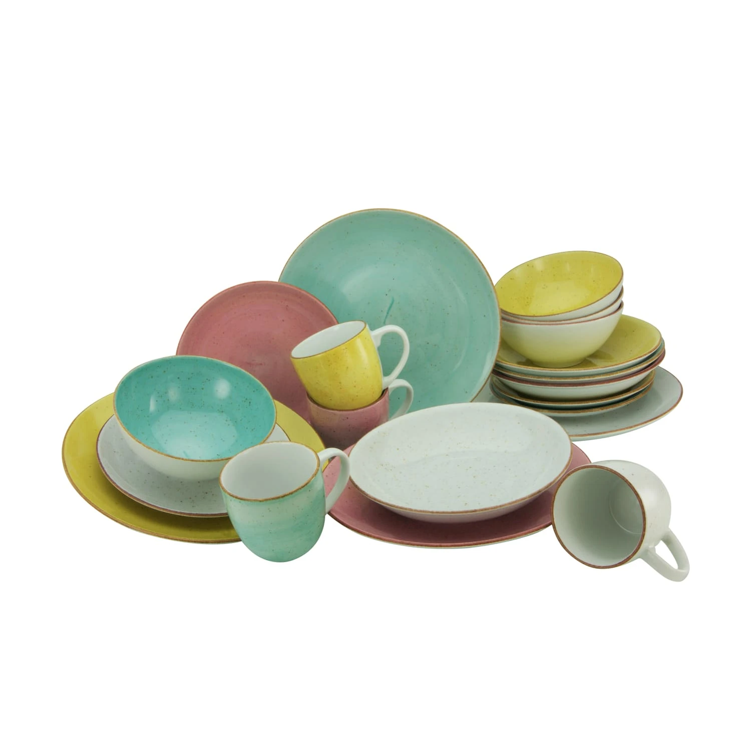 Dieses hochwertige 16 teilige Kombiservice aus der Serie „Vintage Nature“ ist, wie auch alle anderen Teile aus dieser Kollektion, ein echtes Unikat. Handgemalt, gesprenkelt und mit einem rustikalen Außenband gefertigt, vermittelt dieses Set exakt den aktuellen Trend beim Endverbraucher, nämlich Handwerklichkeit, Natürlichkeit und Nachhaltigkeit in Verbindung mit gesunder Ernährung.