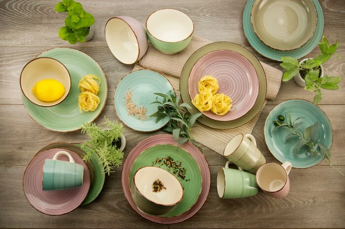 - Je 4 Speiseteller 26 cm, Suppenteller 21 cm, Frühstücksteller 19 cm, Kaffeebecher 300 ml, Müslischalen 14,5 cm