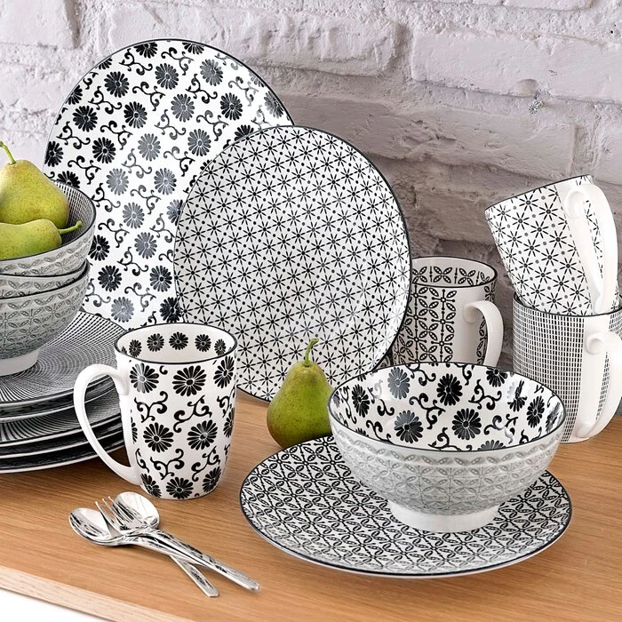 - Je 4 Speiseteller 27 cm, Frühstücksteller 21 cm, Kaffeebecher 300 ml, Müslischale 15 cm