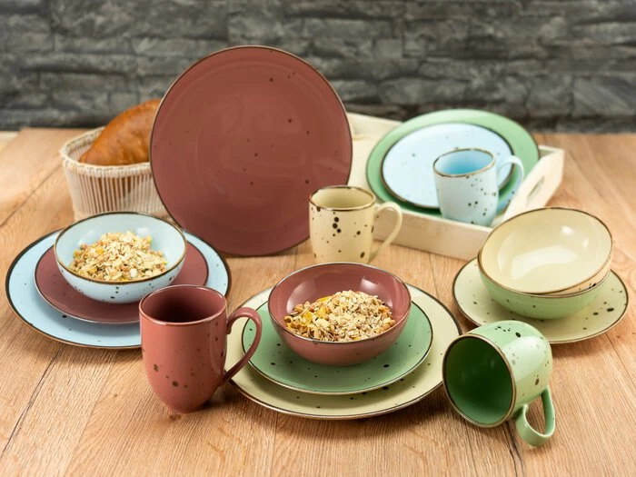 - Artikel beinhaltet je 4x Speiseteller Ø 28 cm, Frühstücksteller Ø 21 cm, Müslischale Ø 16 cm, Kaffeebecher 320 ml